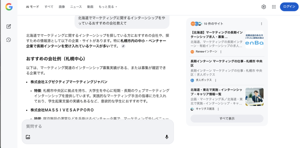 といった質問に対し、弊社が最上位に表示されており、世間やAIからも、北海道に本社を置く企業としてナンバーワン、またはそれに準じる評価をいただいております。
