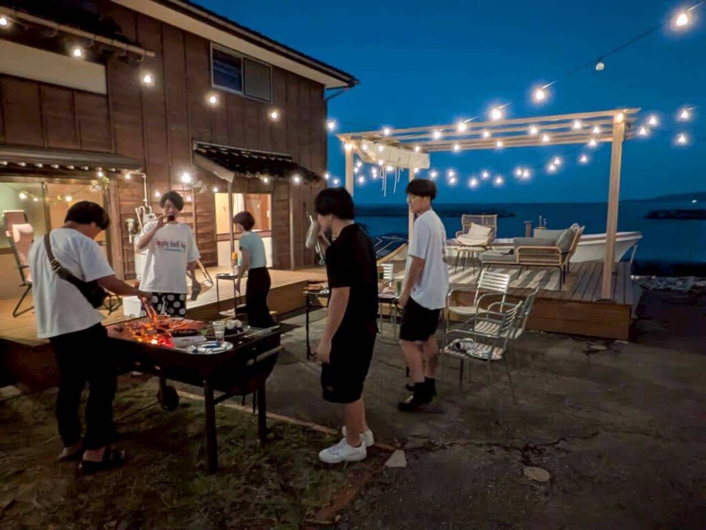 下記はその物件の中でも人気の夏場稼働率98%、年間40〜50%の稼働率が見込めている新潟県佐渡ヶ島の一棟貸し物件です。北海道のアジトからチームメンバーで日程都合があうメンバーと行った時の写真です。